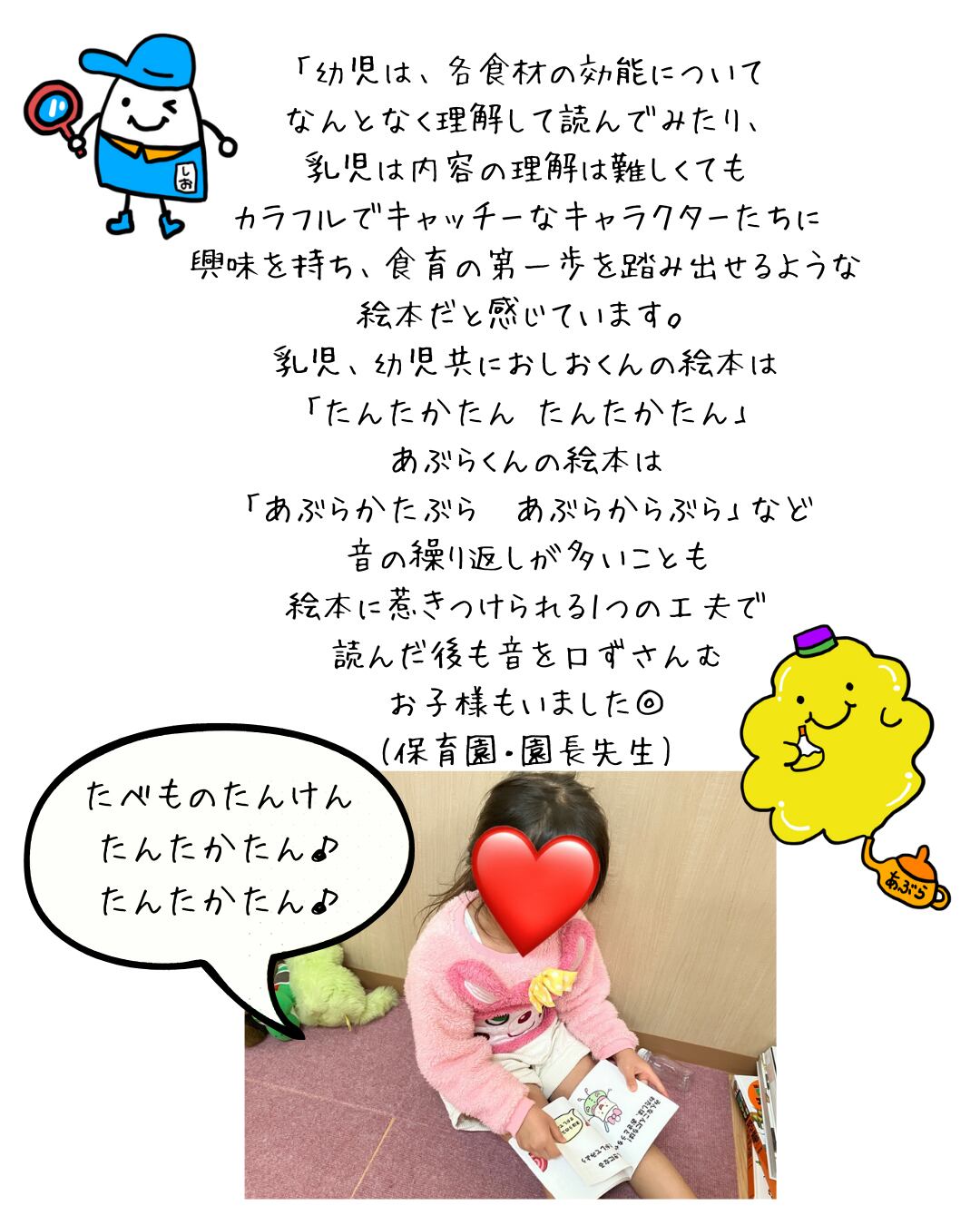 読み聞かせの時間が、そのまま日々の食選びにつながります。