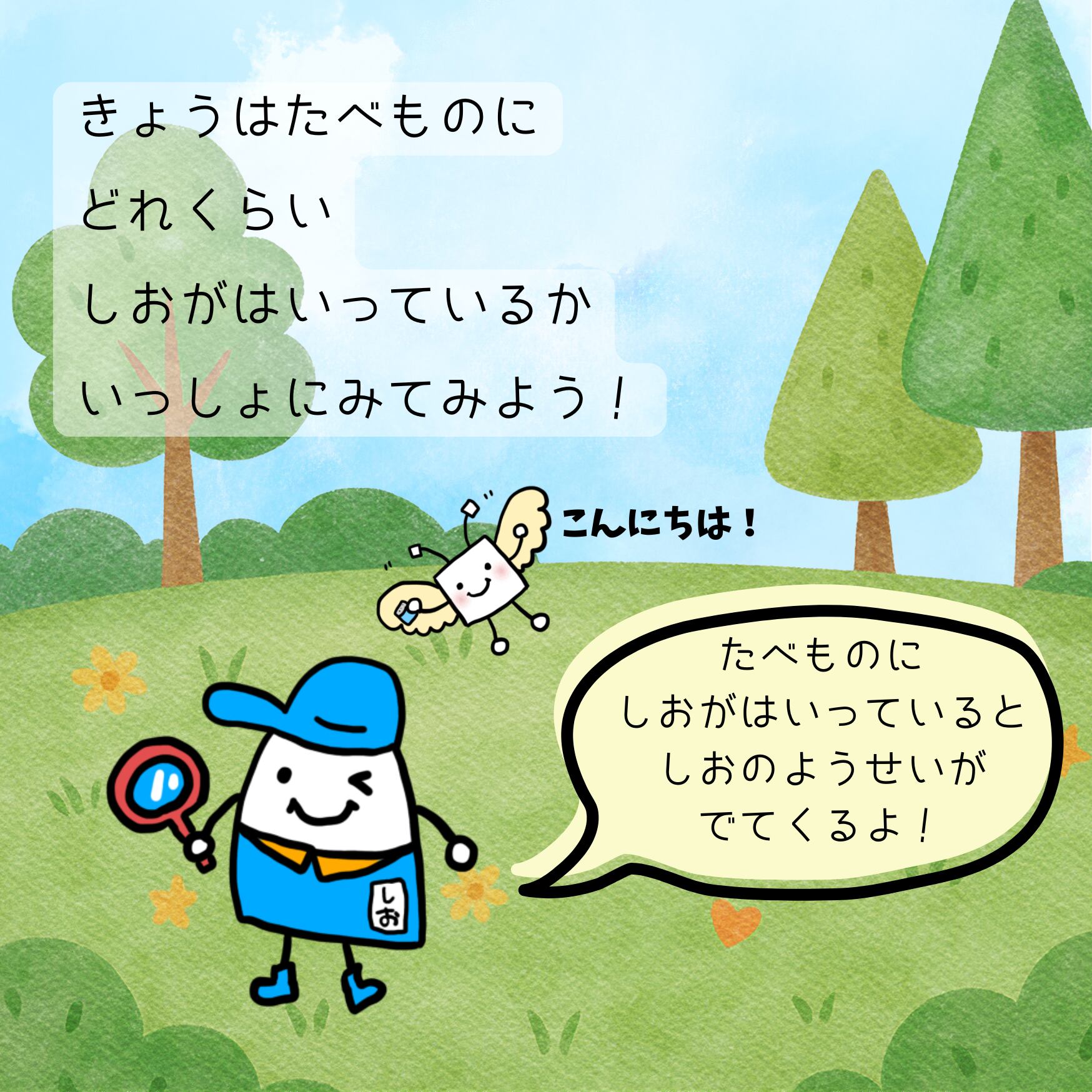 「おしおくん」「おさとうちゃん」「あぶらくん」を、
